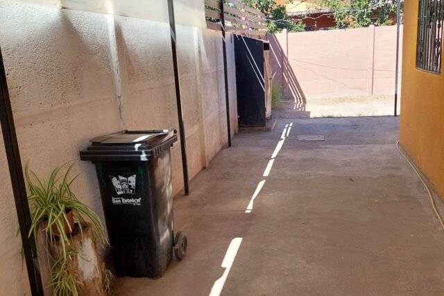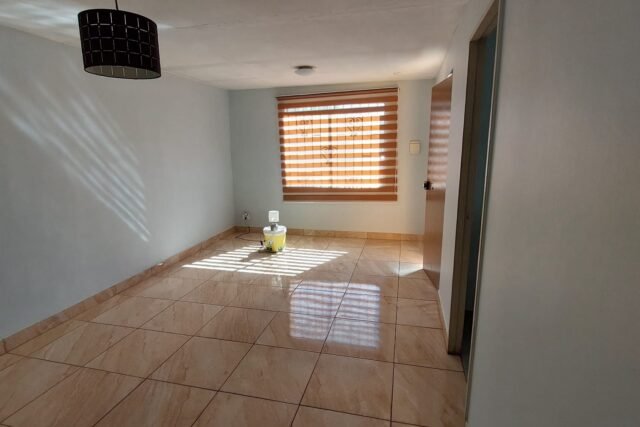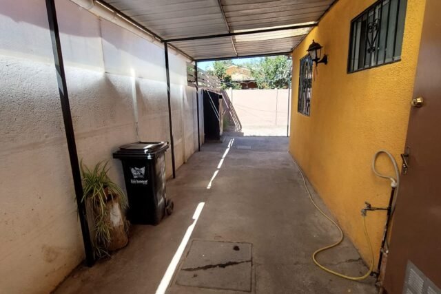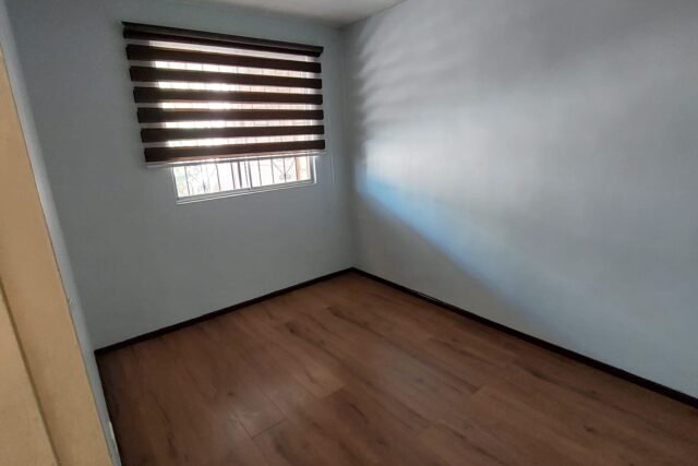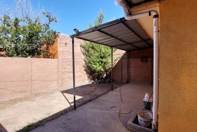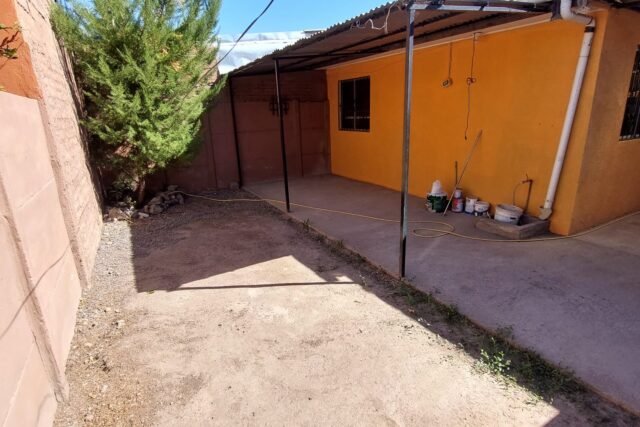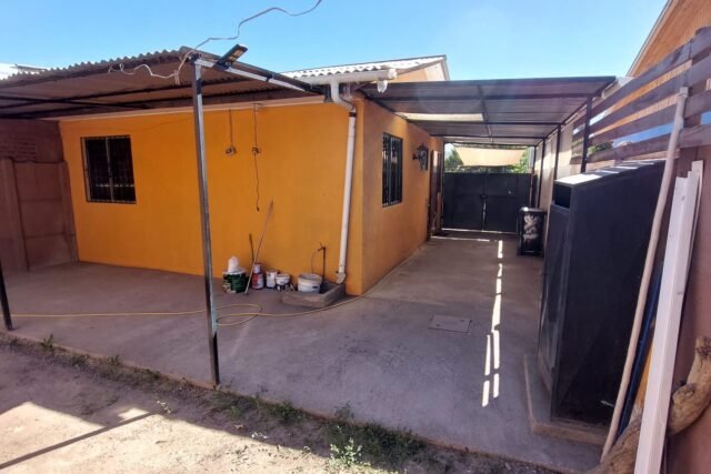 Casa pareada de un piso consta de antejardin, living comedor, cocina semi amoblada, baño completo todos con piso de ceramicos, 2 dormitorios con closets y piso flotante, patio amplio y semi techado, estacionamiento techado para 3 vehículos, protecciones metálicas en ventanas, ubicada frente a área verde