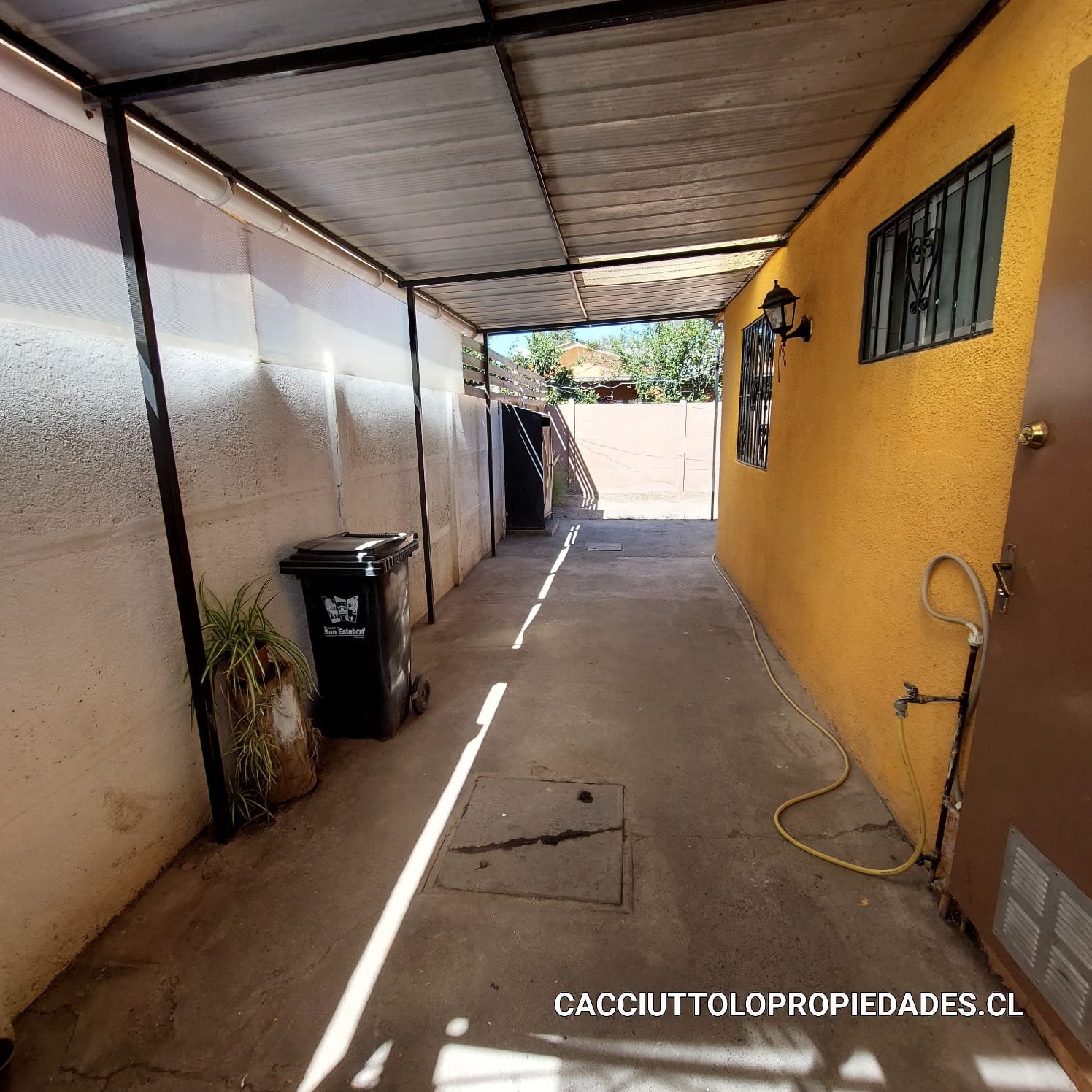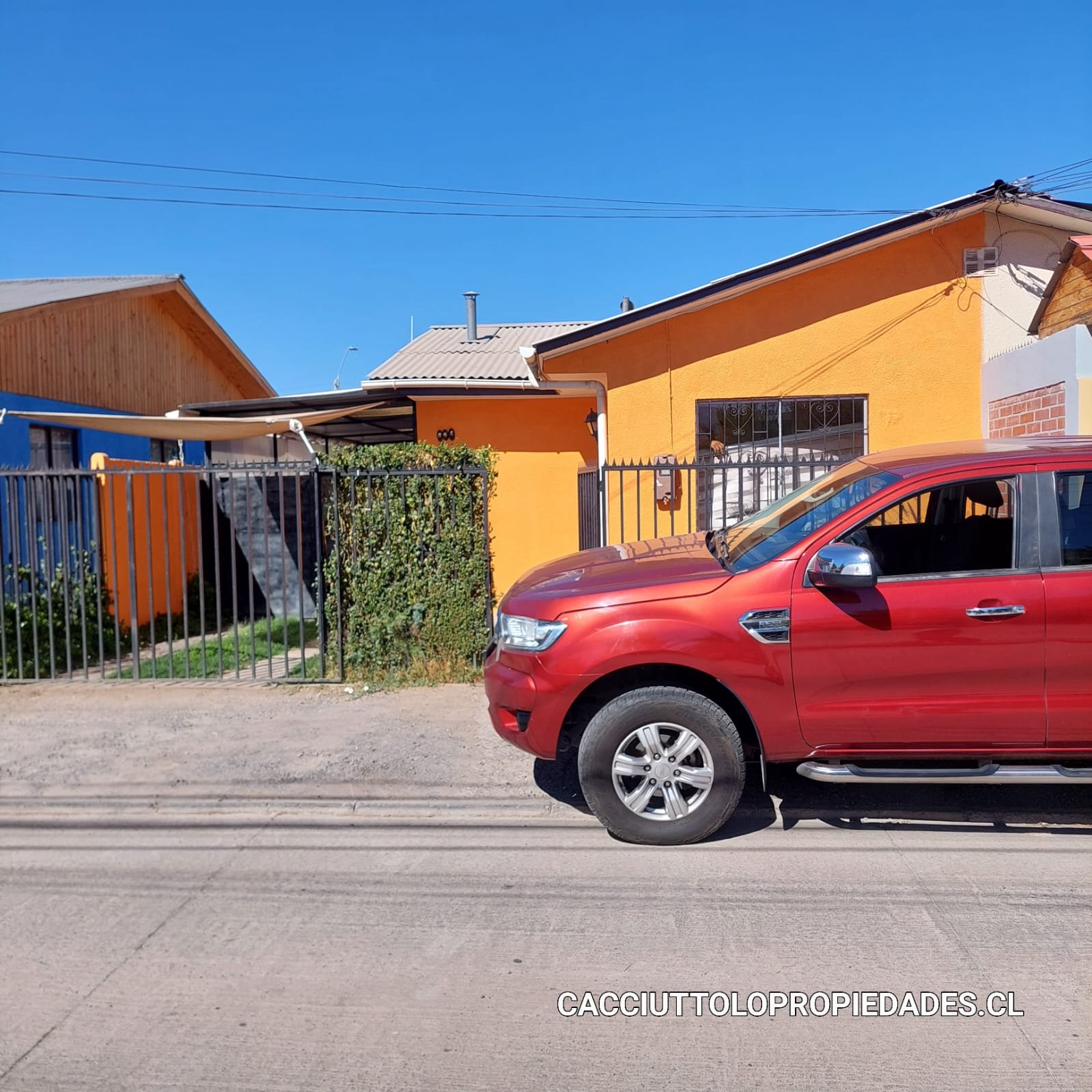 Casa pareada de un piso consta de antejardin, living comedor, cocina semi amoblada, baño completo todos con piso de ceramicos, 2 dormitorios con closets y piso flotante, patio amplio y semi techado, estacionamiento techado para 3 vehículos, protecciones metálicas en ventanas, ubicada frente a área verde