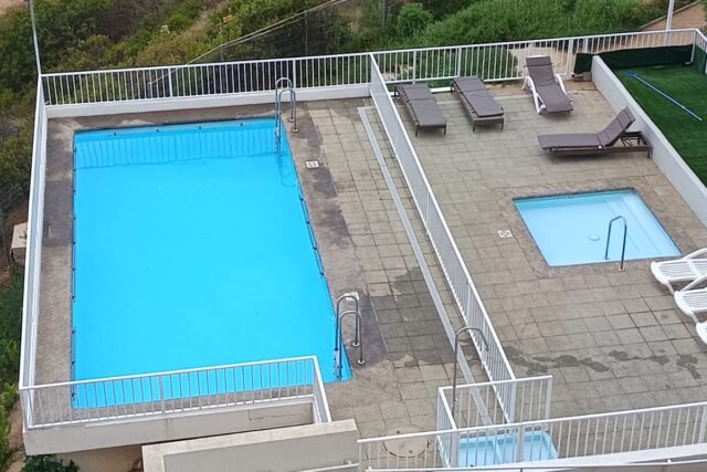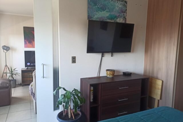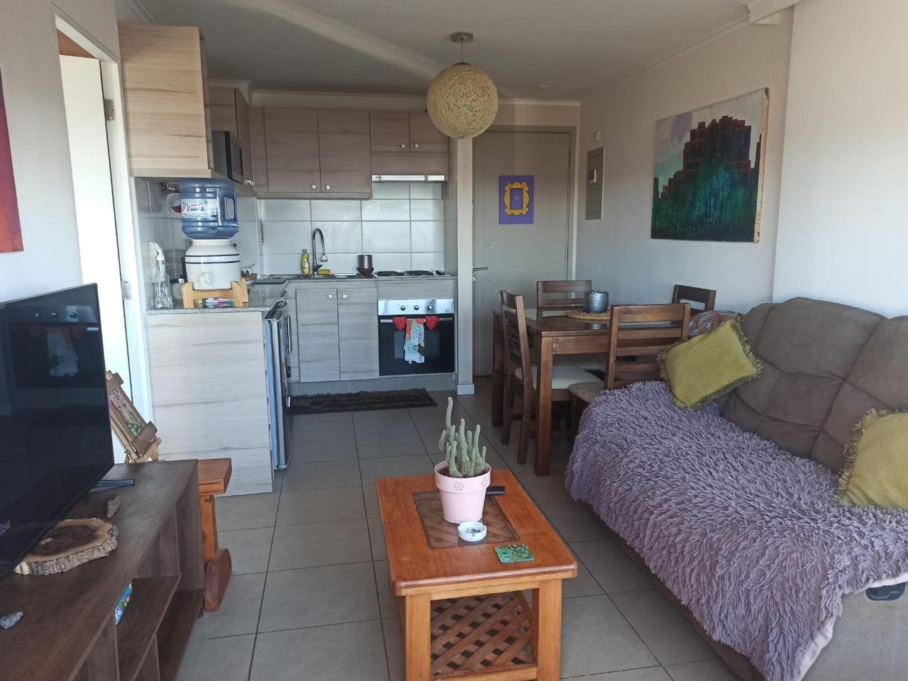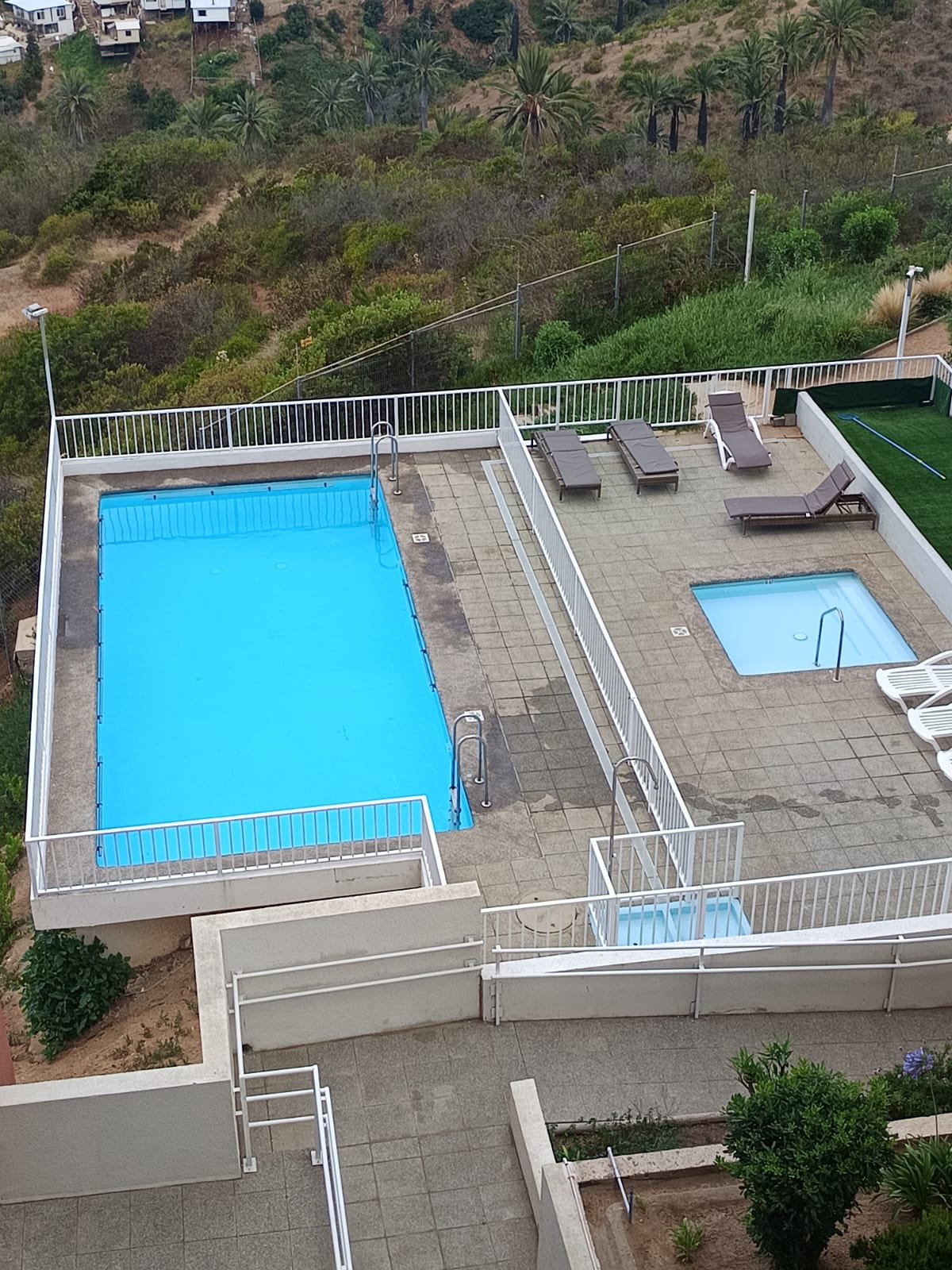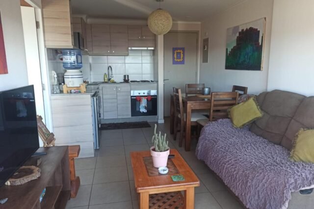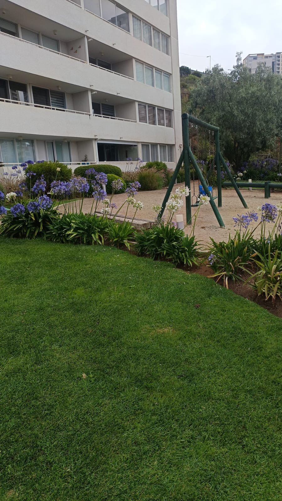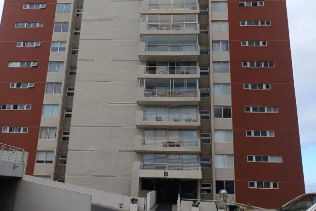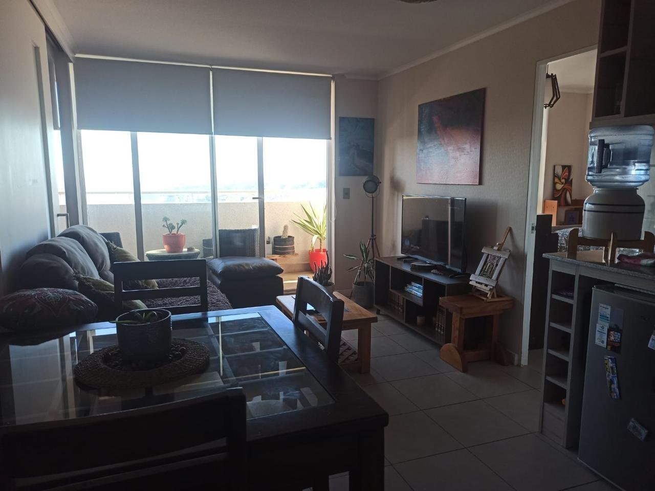 Departamento ubicado en Sendero Sur, tipo mariposa de 2 dormitorios con amplios closets, 2 baños, living comedor, cocina integrada amoblada, terraza, con orientación Norte, en piso 19 en torre con 2 ascensores, estacionamiento de 13 m2, bodega de 4 m2. El departamento está amoblado con cama de 2 plazas, cama nido, comodas, veladores, 2 refrigeradores tipo bar, termo para el agua caliente, cocina eléctrica, lavadora de 8 kg. El condominio se compone de 2 torres, con piscina, sala de reuniones, sala de eventos, quincho, juegos infantiles, áreas verdes, con vigilancia las 24 horas y conserjería.