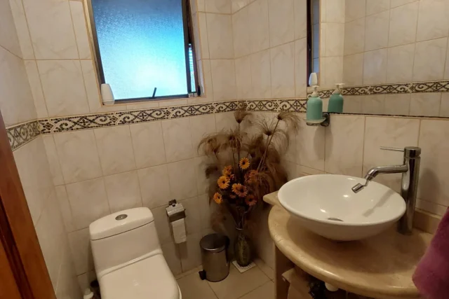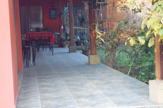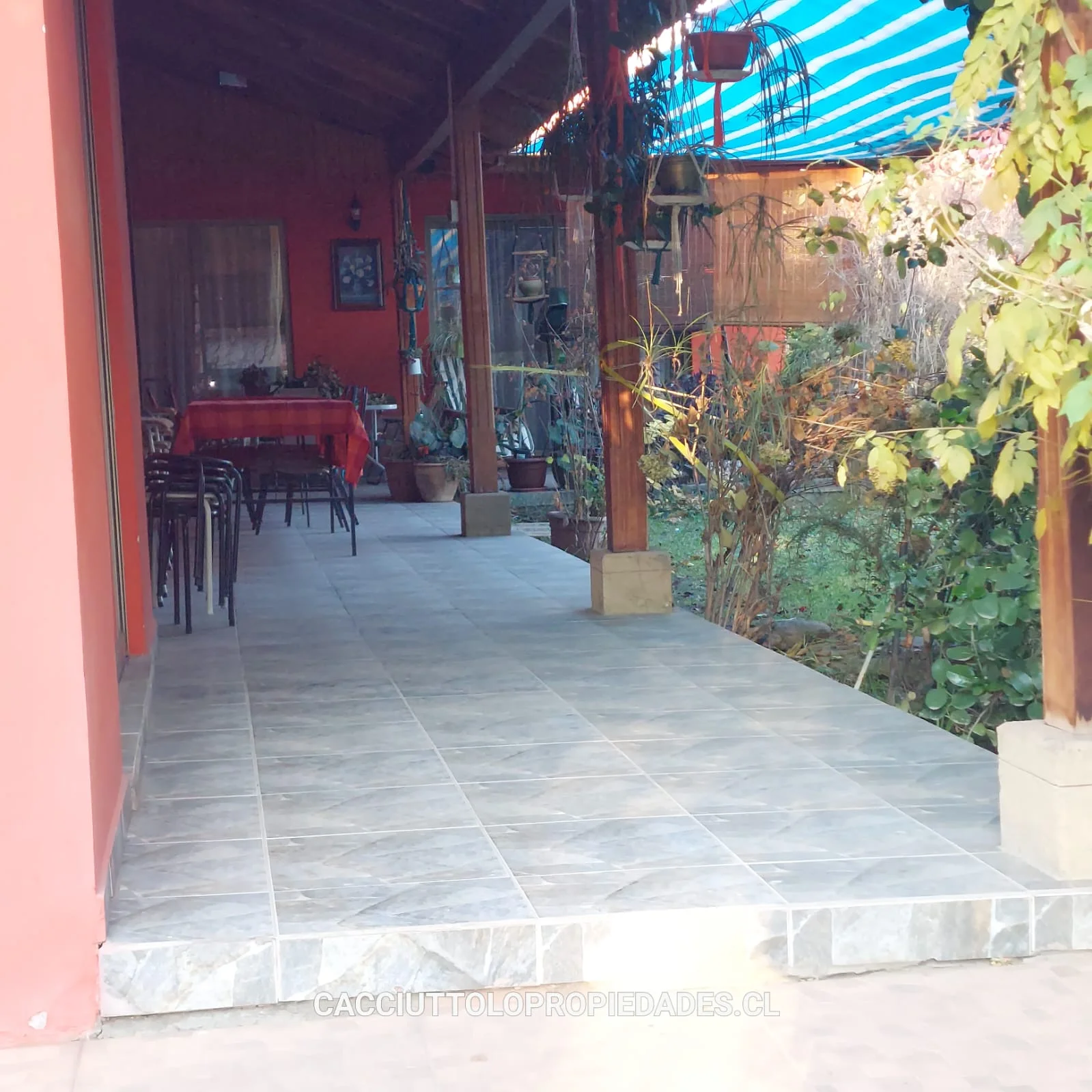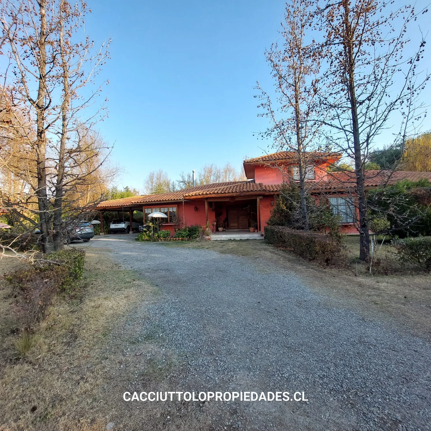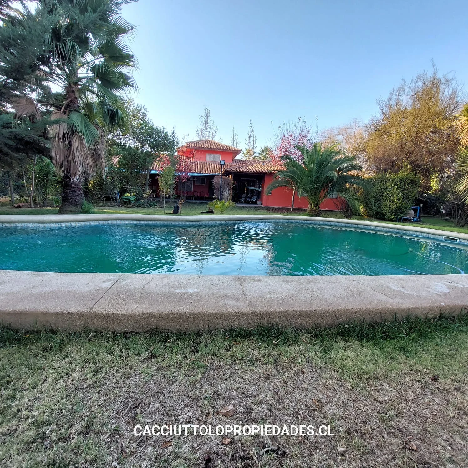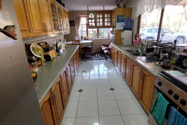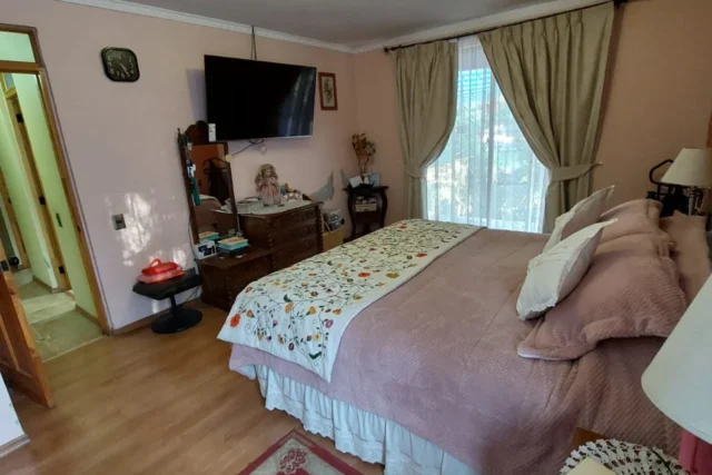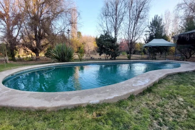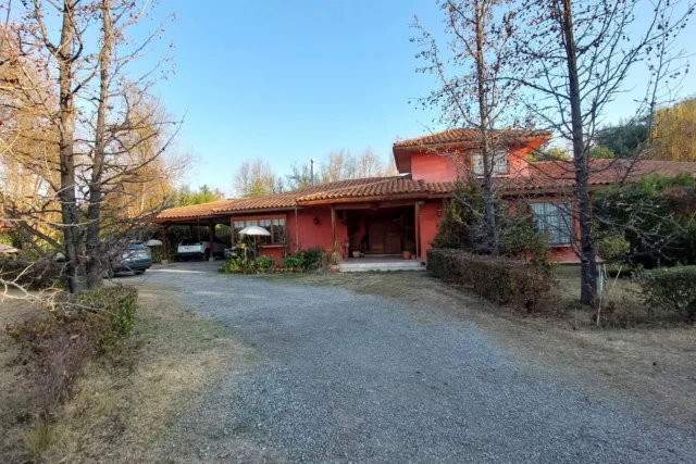 EXTERIOR: corredor techado de 14 x 2,5 metros, terraza de 2,5 x 6 metros, piscina de 12 x 6 metros, camarines con baño, ducha y cocina, container para uso como bodega, bodega metálica, estacionamiento techado para 2 vehículos, sin techar para 4 vehículos mas, bolona de gas de 454 litros, 2 calefont ( uno para baños y el otro para la cocina y logia) leñera, termo solar para calefont baños, alarma, cámaras de vigilancia, derechos de agua de riego inscritos, pozo acumulación agua de riego, riego tecnificado sector piscina y antejardín, gran cantidad de árboles frutales ( riego tendido) 2 portones de acceso automáticos.